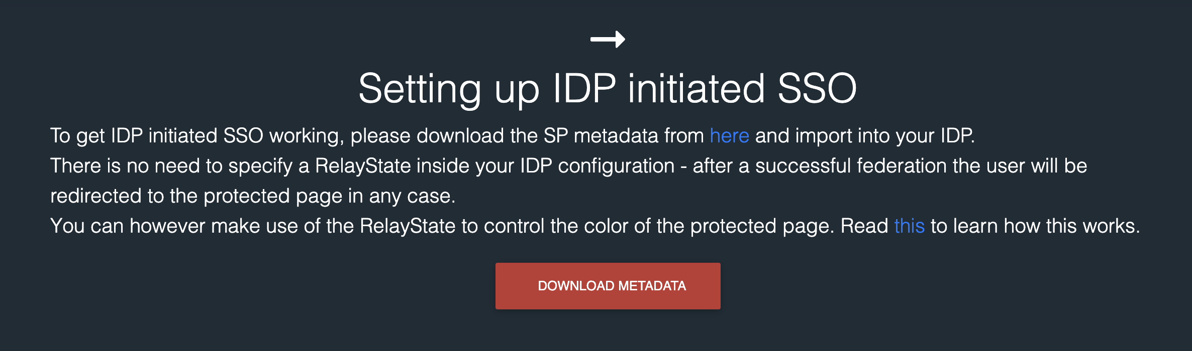 Service provider initiated SSO is a bit more involved. The journey starts at the service provider. For IAMShowcase, they allow you to register IDP metadata, and they generate a URL which will redirect to your IDPs single sign on service endpoint, as listed in the XML. For this instance, that is<md:SingleSignOnService Binding="urn:oasis:names:tc:SAML:2.0:bindings:HTTP-Redirect" Location="http://localhost:3000/saml/auth"/>The link generated by IAmShowcase is arbitrary, and only for testing purposes: